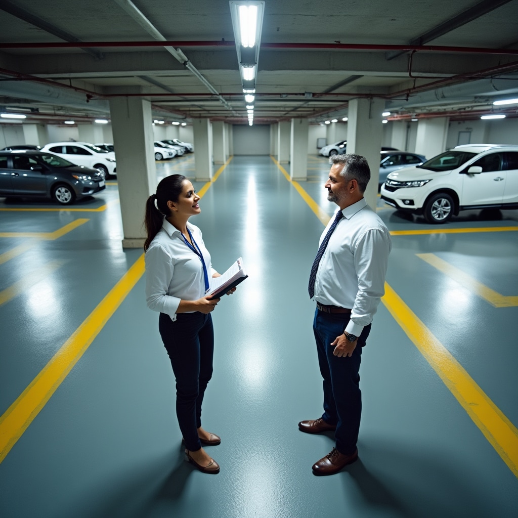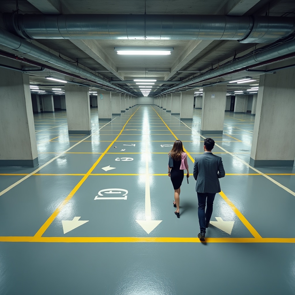 Underground and covered parking with moisture management and industrial coatings. Epoxy systems resist automotive fluids and mechanical wear.