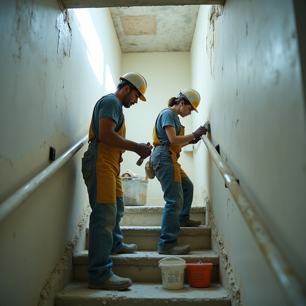 Vertical circulation requiring heavy-duty finishes and phased execution. Work maintains building access while delivering professional results across multiple floors.